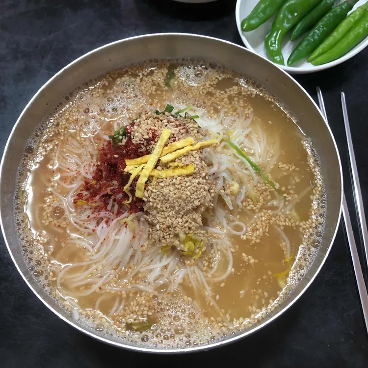 또한, 사이드 메뉴로는 깍두기와 고추가 제공되며, 이 조합이 국수와 잘 어울려요. 국수와 함께 나오는 고명은 참깨와 고추가루, 그리고 생강 슬라이스가 올라가 있어요.