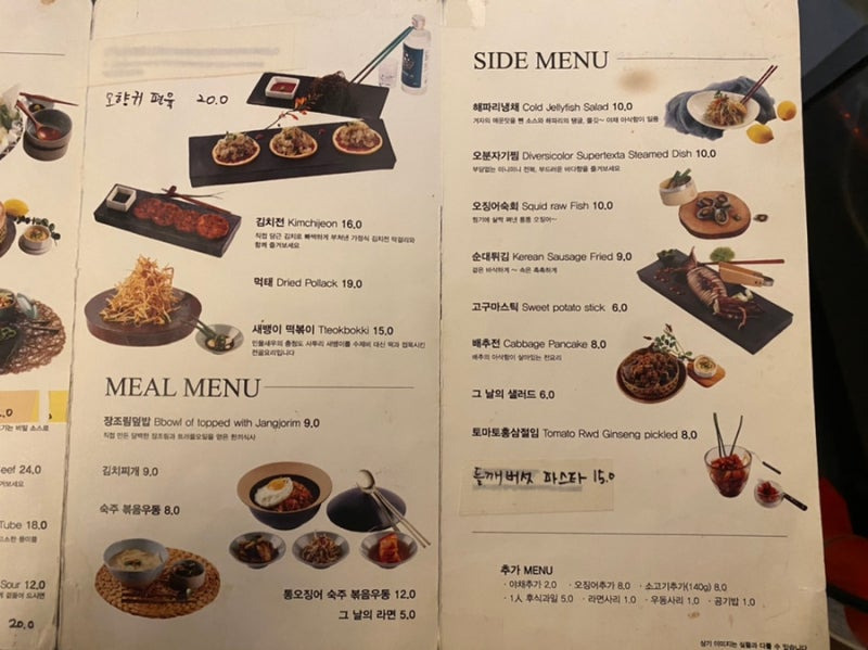 가격은 6,000원에서 10,000원 사이로, 가벼운 안주로도 좋답니다. 메뉴판은 깔끔하게 정리되어 있어 선택하기도 쉬워요.