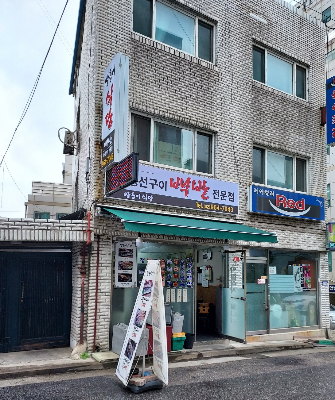 쌍둥이식당은 청량리역에서 도보로 약 5분 거리에 위치해 있어요. 외관은 아담하고 소박한 느낌을 주며, 식당 앞에는 큰 간판이 있어 쉽게 찾을 수 있어요.