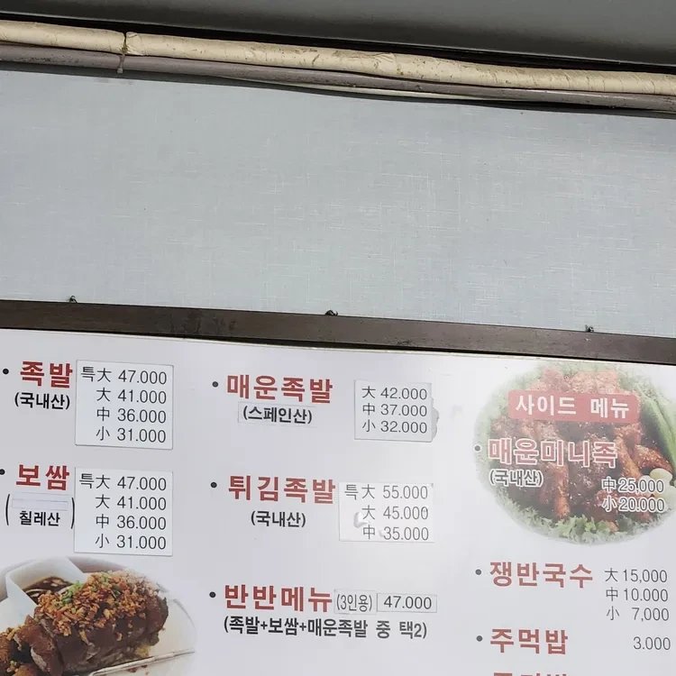 또한, 반반 메뉴도 있어 족발과 보쌈을 함께 즐길 수 있어요. 가격은 약 47,000원으로 조금 비싼 감이 있지만, 그만큼 퀄리티가 높아요.