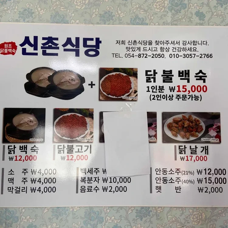 저는 원조신촌식당을 방문한 후, 정말 만족스러운 경험을 했어요. 닭불백숙을 주문했는데, 국물이 진하고 닭고기가 부드러워서 정말 맛있었어요.