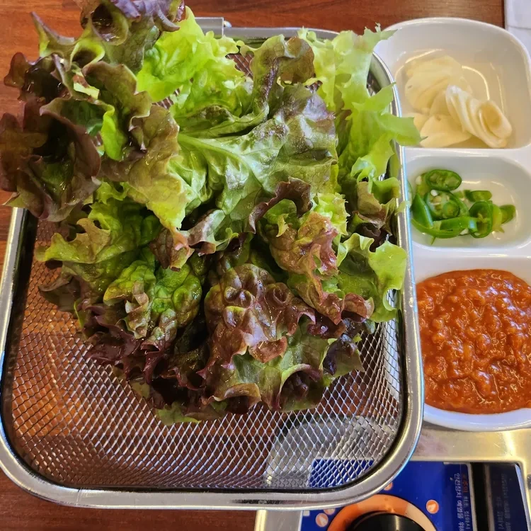 마지막으로, 식사와 함께 제공되는 다양한 밑반찬도 놓칠 수 없어요. 신선한 채소와 함께 제공되는 쌈채소는 식사를 더욱 풍성하게 만들어 줍니다.