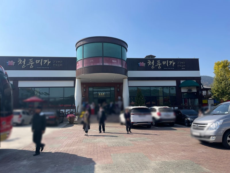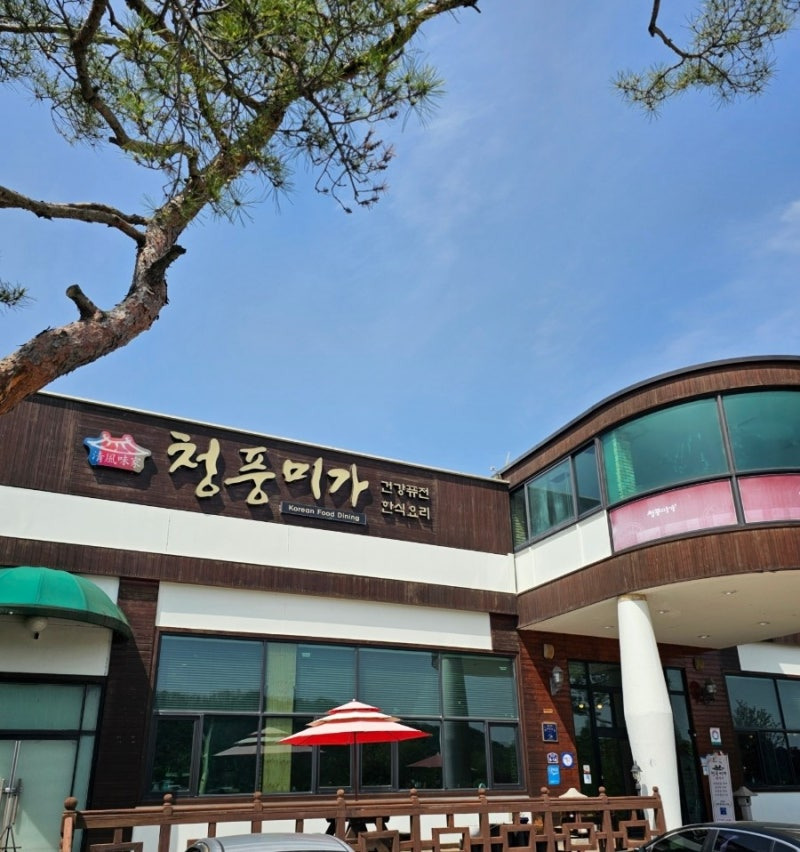 청풍미가는 청주 시내에서 접근성이 좋은 위치에 자리 잡고 있습니다. 외관은 현대적인 디자인으로, 큰 창문과 곡선형 지붕이 인상적입니다.