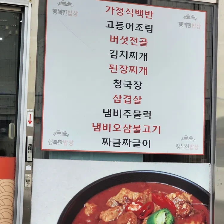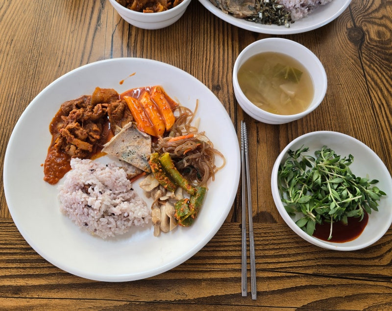 행복한밥상의 가장 큰 매력은 바로 가격이에요. 1인당 5,000원이라는 저렴한 가격에 다양한 한식을 즐길 수 있어요. 메뉴는 고등어조림, 김치찌개, 제육볶음, 잡채 등 다양한 한식이 준비되어 있어요. 특히, 고추장 베이스의 제육볶음은 매콤하면서도 밥과 잘 어울려서 인기가 많아요.