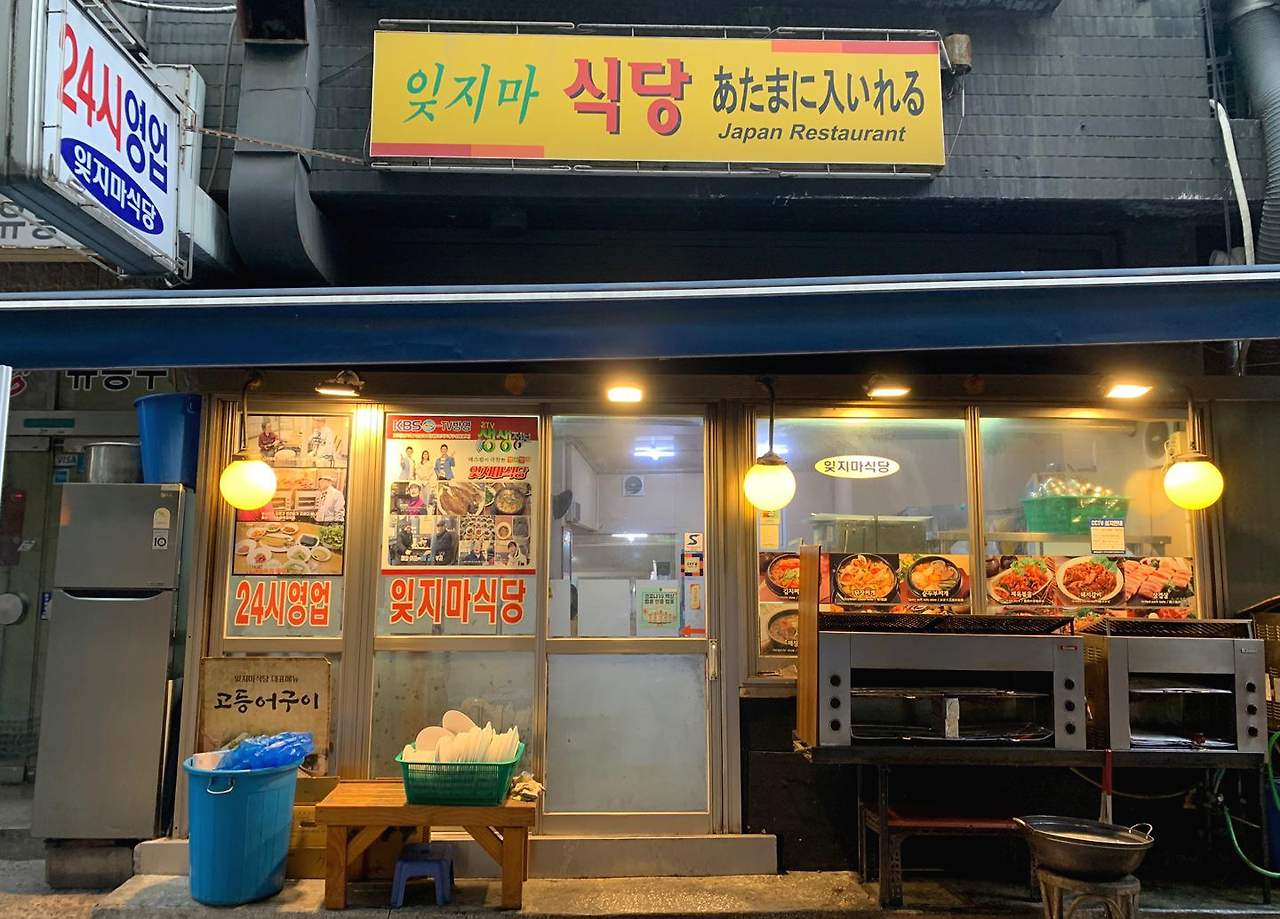 잊지마식당은 충무로역에서 도보로 약 5분 거리에 위치해 있어요. 이곳은 24시간 운영되기 때문에 언제든지 방문할 수 있는 장점이 있답니다. 식당 외관은 아담하면서도 아늑한 느낌을 주고, 입구에는 다양한 메뉴가 적힌 포스터가 붙어 있어요.