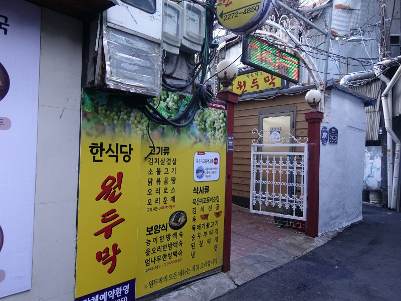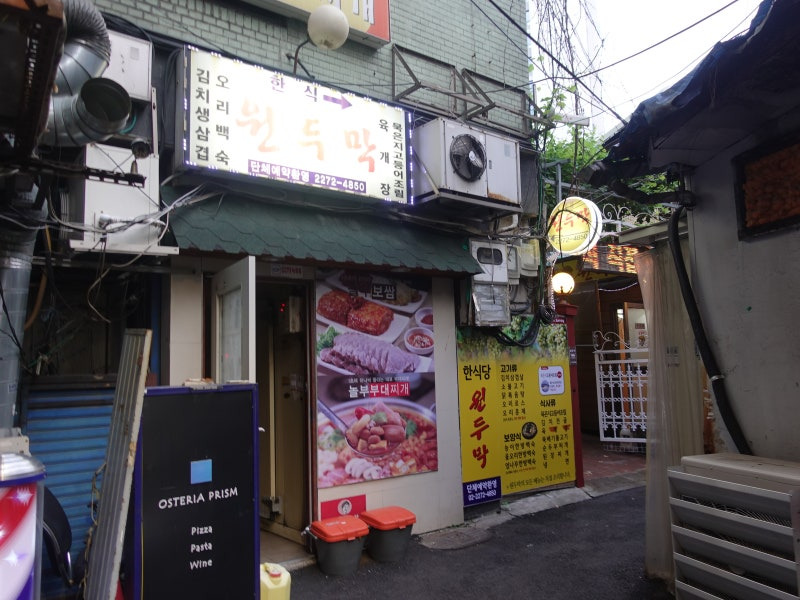 원두막은 충무로의 좁은 골목에 위치해있어요. 처음 식당에 들어가려면 간판이 잘 보이도록 천천히 걸어야 해요.