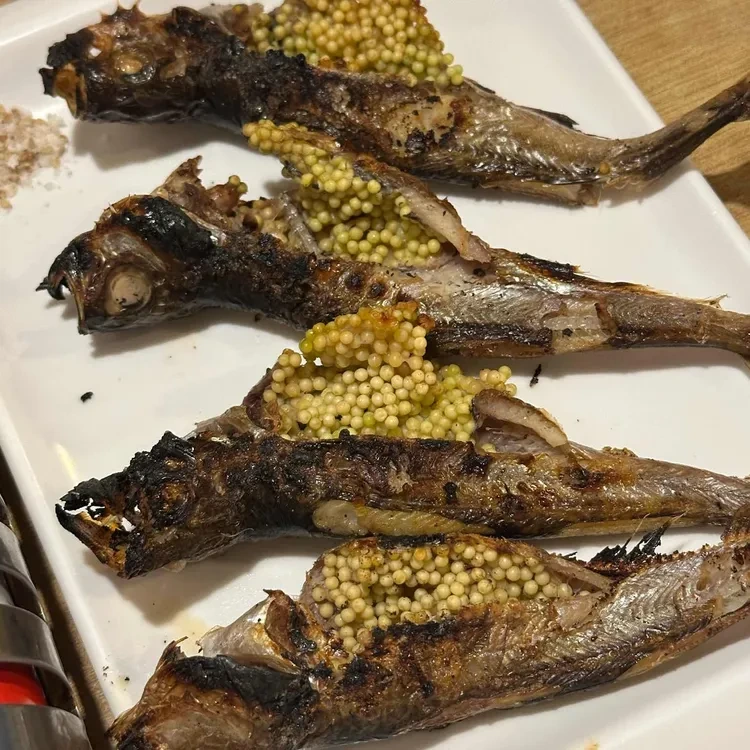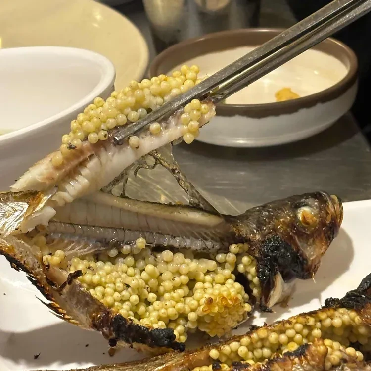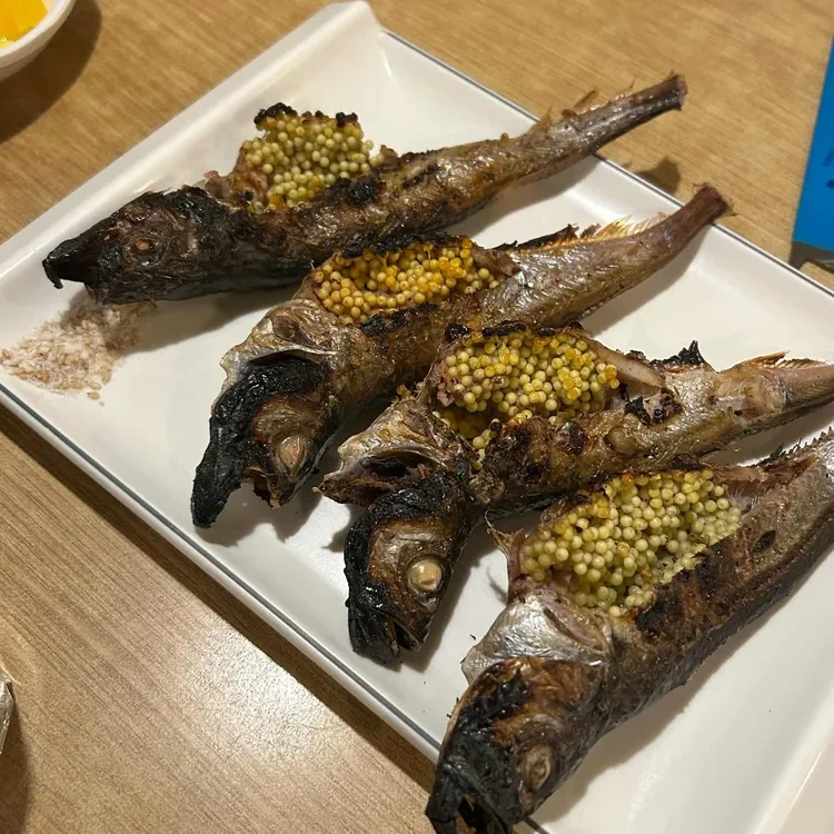 또한, 이곳의 '구운 생선'도 빼놓을 수 없어요. 생선은 바삭하게 구워져서 고소한 맛이 일품이에요. 특히 생선 위에 올라간 노란 알은 별미로, 식감이 아주 좋답니다.