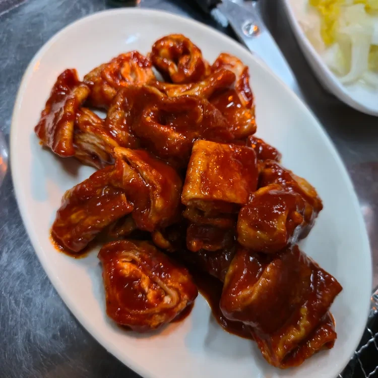 수미곱창의 자랑인 한우 곱창은 꼭 주문해야 할 메뉴예요. 특히, 곱창과 함께 제공되는 마늘은 그 맛을 더욱 끌어올려 주는데요, 마늘의 풍미가 곱창과 잘 어우러져 정말 맛있답니다. 또한, 한우 대창도 인기 메뉴 중 하나로, 고소한 맛이 일품이에요. 그 외에도 다양한 사이드 메뉴인 쌈채소와 소스도 함께 제공되어, 입맛을 더욱 돋워 줍니다.