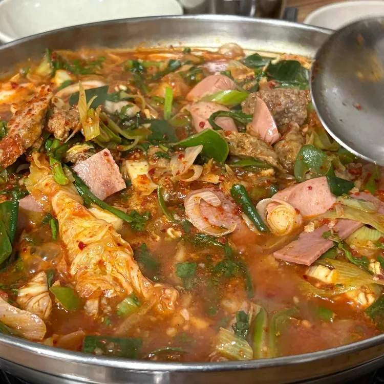 이곳의 대표 메뉴는 바로 부대찌개에요. 부대찌개는 다양한 재료가 들어가는데, 특히 소시지, 햄, 두부, 그리고 신선한 채소들이 어우러져 깊은 맛을 내요. 부대찌개 외에도 김치전, 계란찜 등 다양한 사이드 메뉴가 있어요. 개인적으로는 부대찌개와 함께 김치전이 정말 잘 어울린다고 생각해요.