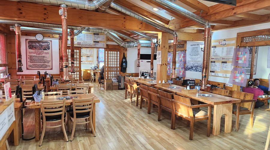 숑스바베큐는 파주 헤이리 마을에 위치해 있어요. 이곳은 주차 공간도 넉넉해서 차를 가지고 가도 전혀 불편함이 없답니다. 가게에 들어서면 우드톤의 따뜻한 인테리어가 돋보여요. 내부는 넓고 쾌적하며, 여러 테이블이 마련되어 있어 단체 손님도 수용할 수 있는 구조예요.
