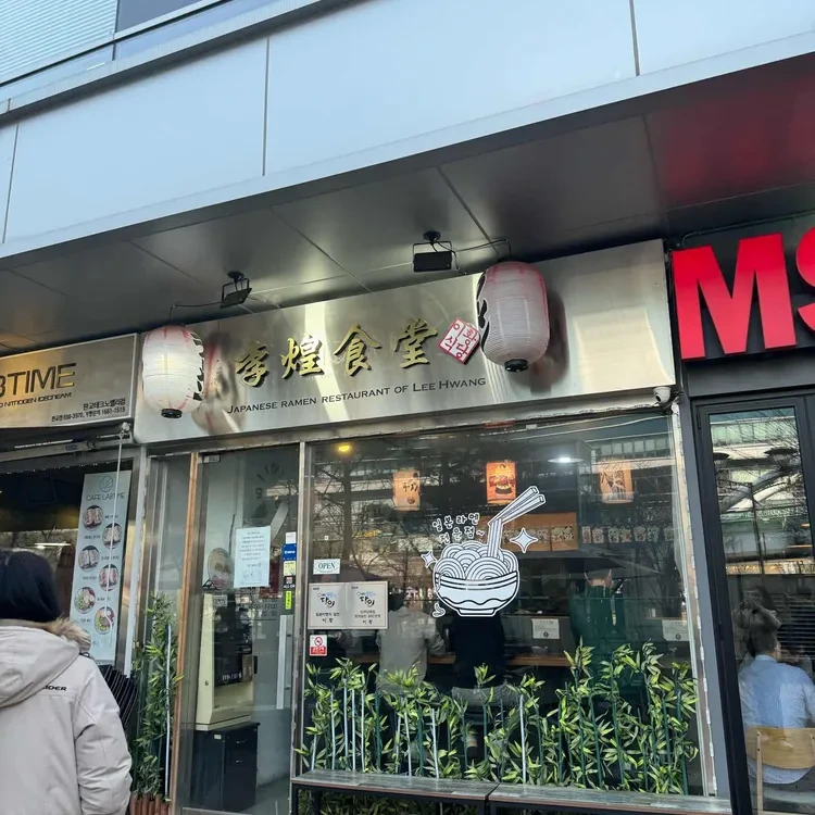 이황식당은 판교의 번화가에 위치해 있어 접근성이 매우 좋아요. 외관은 현대적인 디자인으로 꾸며져 있으며, 입구에는 반짝이는 금속 간판이 눈에 띄어요. 간판에는 영어와 한국어로 '이황식당'이라고 적혀 있고, 그 위에는 장식용 랜턴들이 걸려 있어 아늑한 느낌을 줍니다.