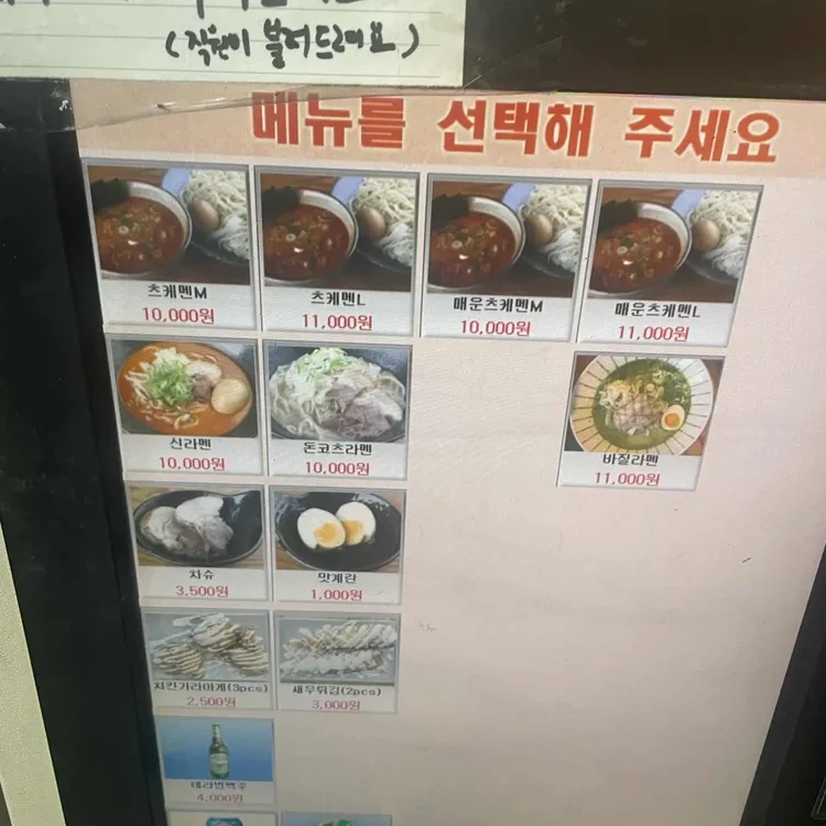 또한, 사이드 메뉴로는 '차슈'와 '새우튀김'이 있어요. 차슈는 3,500원, 새우튀김은 3,000원으로, 메인 메뉴와 함께 즐기기 좋은 선택이에요.