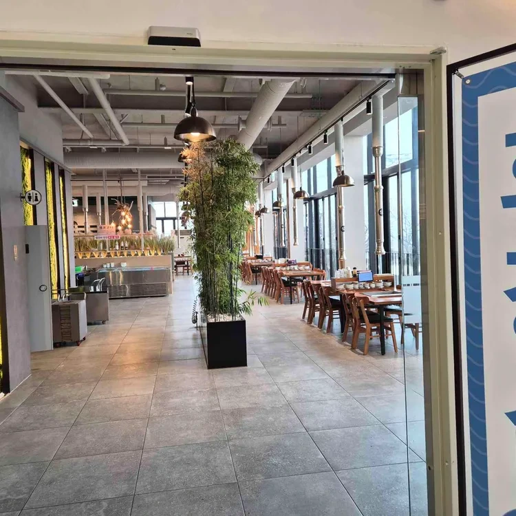 식당 내부는 넓고 쾌적해요. 테이블 간격도 넉넉해서 다른 손님들과의 간섭 없이 편안하게 식사할 수 있어요. 인테리어는 현대적이고 세련된 느낌으로, 자연광이 잘 들어와서 아늑한 분위기를 만들어줘요.