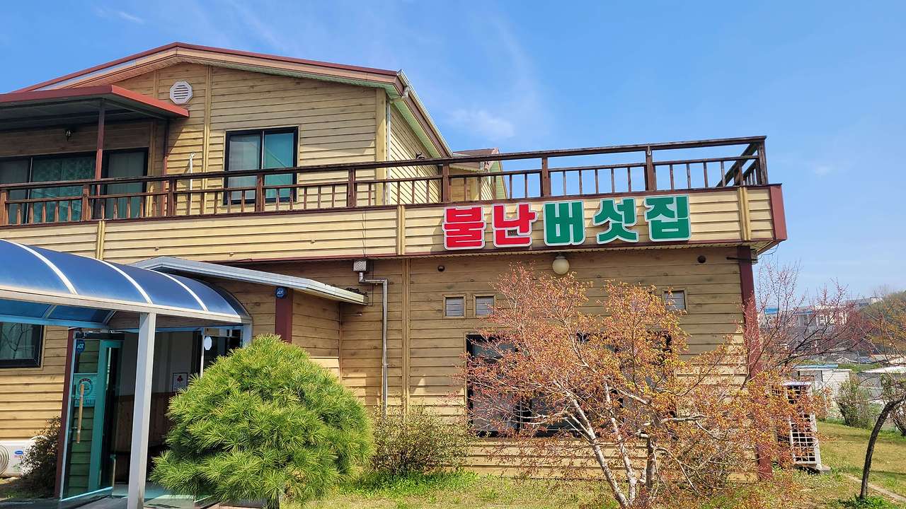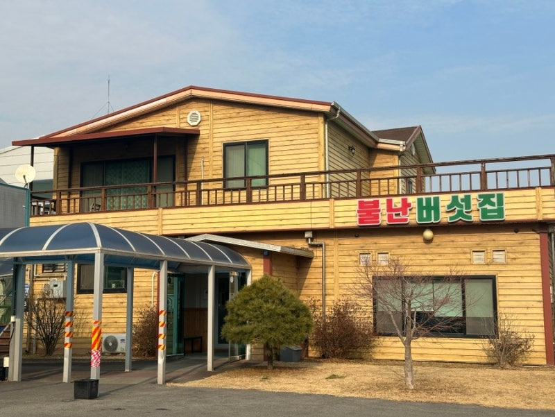 불난버섯집은 평택 고덕에 위치해 있어요. 이곳은 아늑한 분위기의 목조 건물로, 입구에는 "불난버섯집"이라는 간판이 눈에 띄어요.