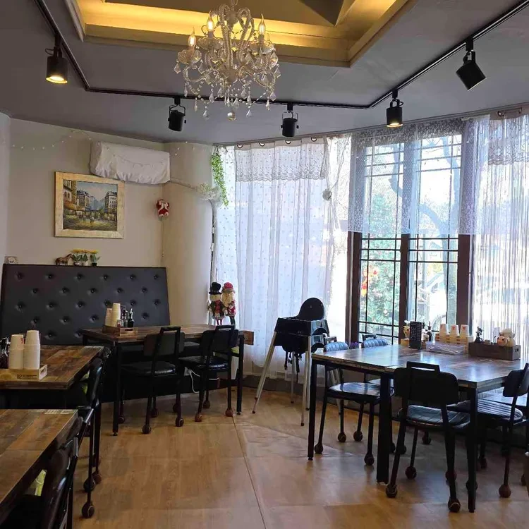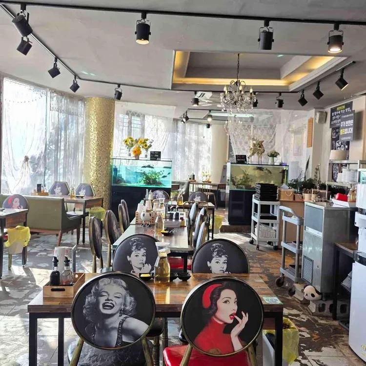 식당 내부는 아늑하고 현대적인 분위기로 꾸며져 있어요. 나무 테이블과 의자, 그리고 큰 창문으로 들어오는 자연광이 공간을 밝고 따뜻하게 만들어줍니다.