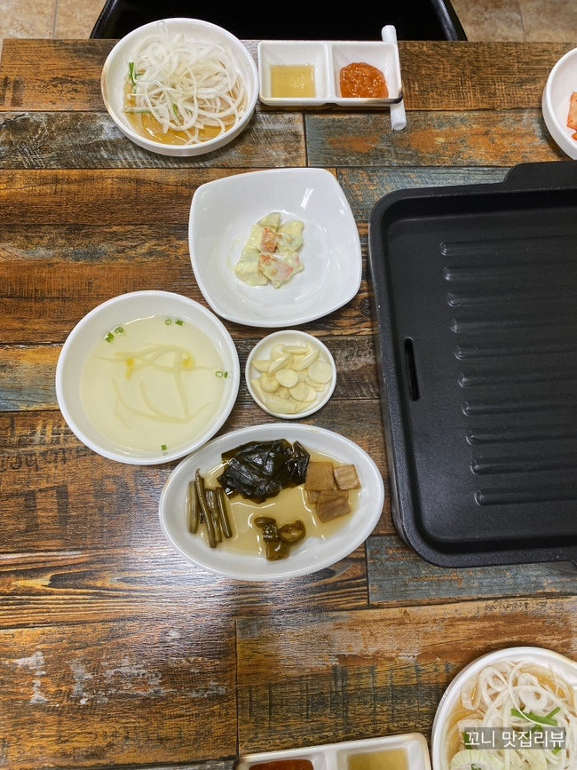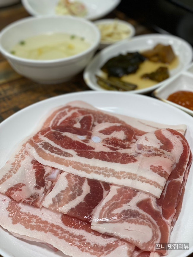 이 고기는 마블링이 잘 되어 있어 육즙이 풍부하고, 고소한 맛이 일품이에요. 그리고 다양한 반찬도 함께 제공되는데, 이 반찬들이 고기와 잘 어울려서 더욱 맛있게 즐길 수 있어요.