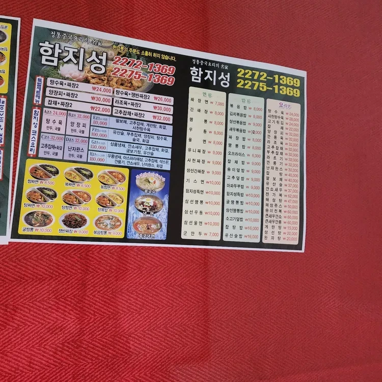 함지성의 메뉴는 다양하고 가격대도 합리적이에요.