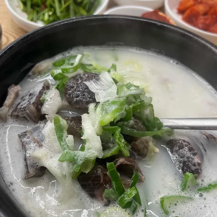신소양 선지국밥의 대표 메뉴는 바로 선지국밥이에요. 이 국밥은 신선한 소고기와 선지를 사용하여 깊고 진한 맛을 자랑해요. 국물은 부드럽고 고소하며, 고기와 함께 먹으면 정말 맛있답니다. 특히, 국밥 위에 올려진 파와 무가 국물의 풍미를 더욱 살려줘요.