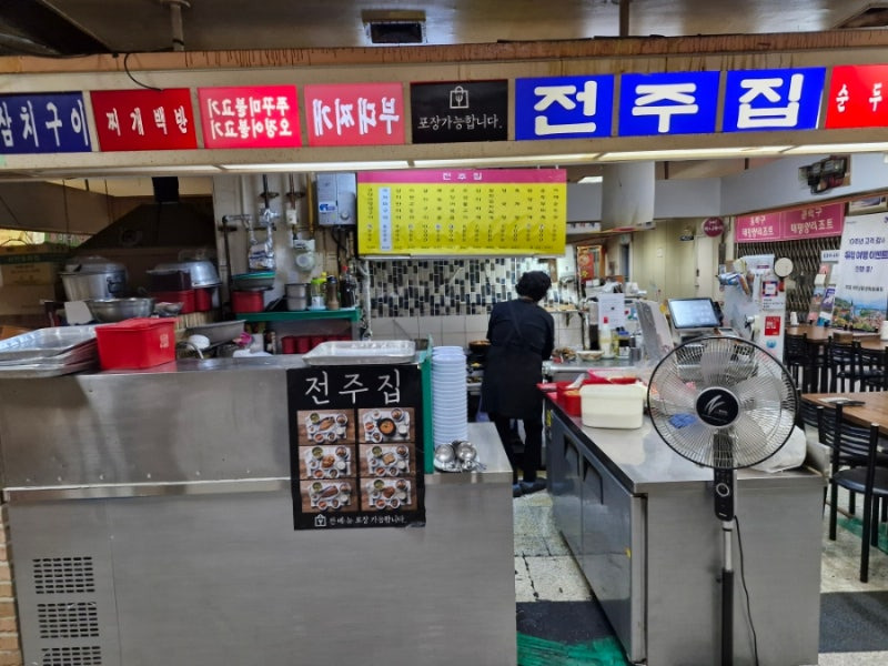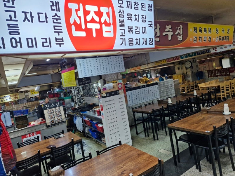 전주집의 내부는 아늑하고 편안한 분위기로 꾸며져 있어요. 나무 테이블과 의자가 배치되어 있어, 가족이나 친구들과 함께 오기 좋은 곳이에요.