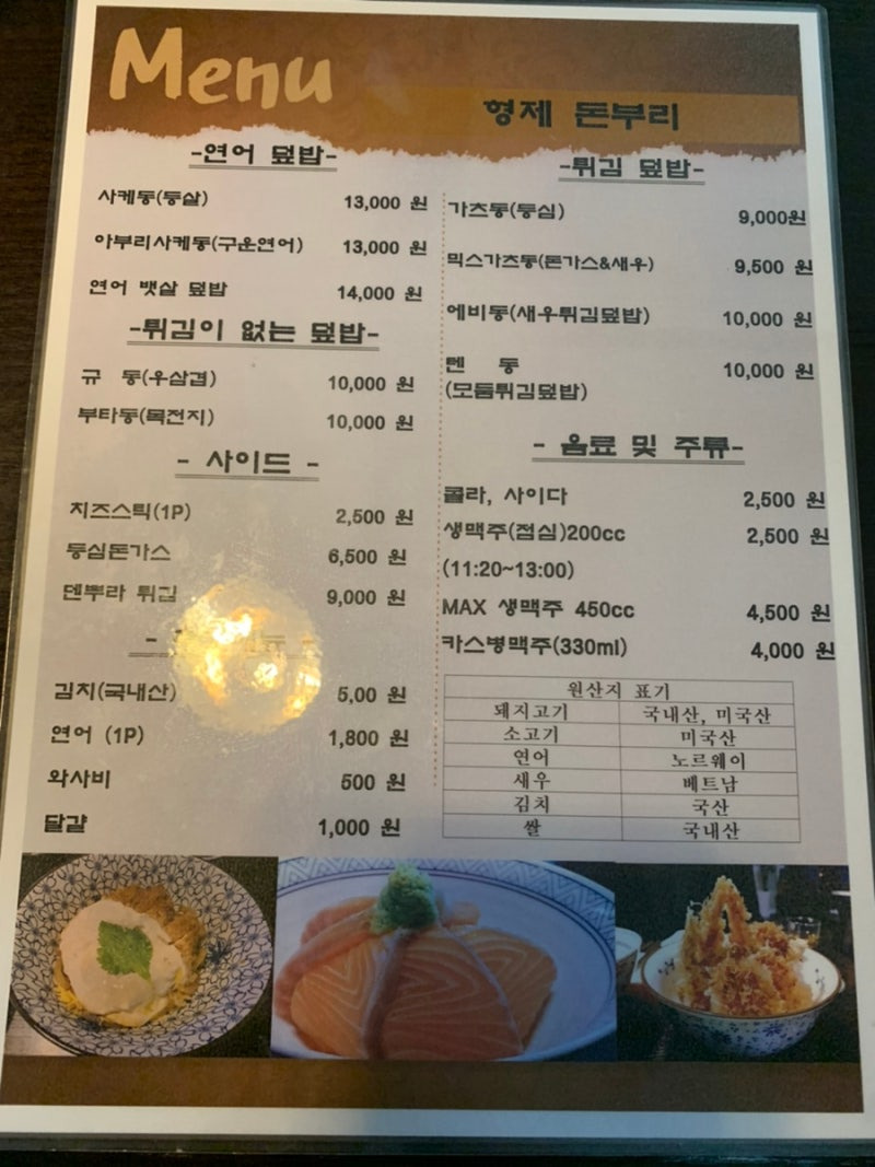 형제돈부리의 메뉴는 정말 다양해요. 대표적인 메뉴로는 사케동, 연어 박살 돈부리, 에비동 등이 있어요. 가격대는 9,000원에서 14,000원 사이로, 푸짐한 양과 맛을 고려하면 합리적인 가격이라고 생각해요. 특히, 연어 박살 돈부리는 두툼한 연어가 올라가 있어 많은 손님들이 찾는 인기 메뉴랍니다.