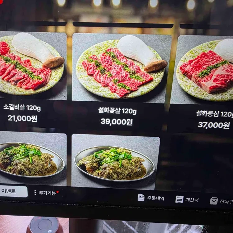 육몽의 메뉴는 다양하지만, 특히 추천하고 싶은 메뉴는 소갈비살과 목살이에요. 소갈비살은 120g에 21,000원으로, 부드러운 식감과 깊은 풍미가 일품이에요. 목살은 고소한 맛이 일품으로, 가격은 15,000원 정도에요. 이 외에도 다양한 고기 메뉴가 준비되어 있어 선택의 폭이 넓답니다.