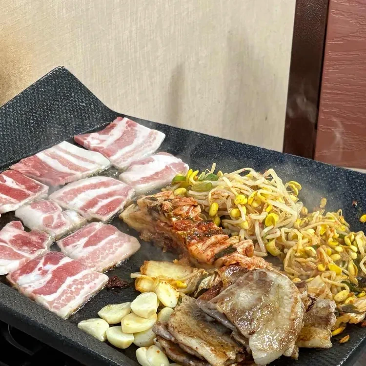 특히, 콩나물과 묵은지, 총각김치가 함께 나와서 고기와 잘 어울려요. 고기를 구울 때 나는 향이 정말 매력적이랍니다.
