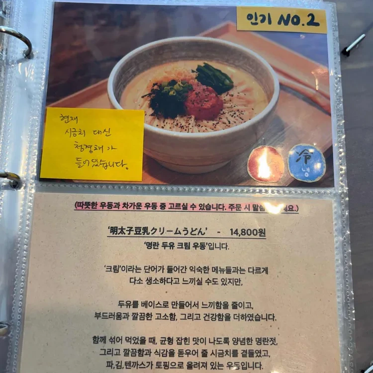 이 외에도 '카레 우동'과 '크림 라멘'도 인기 메뉴인데, 각각의 가격은 12,000원과 11,000원 정도에요.