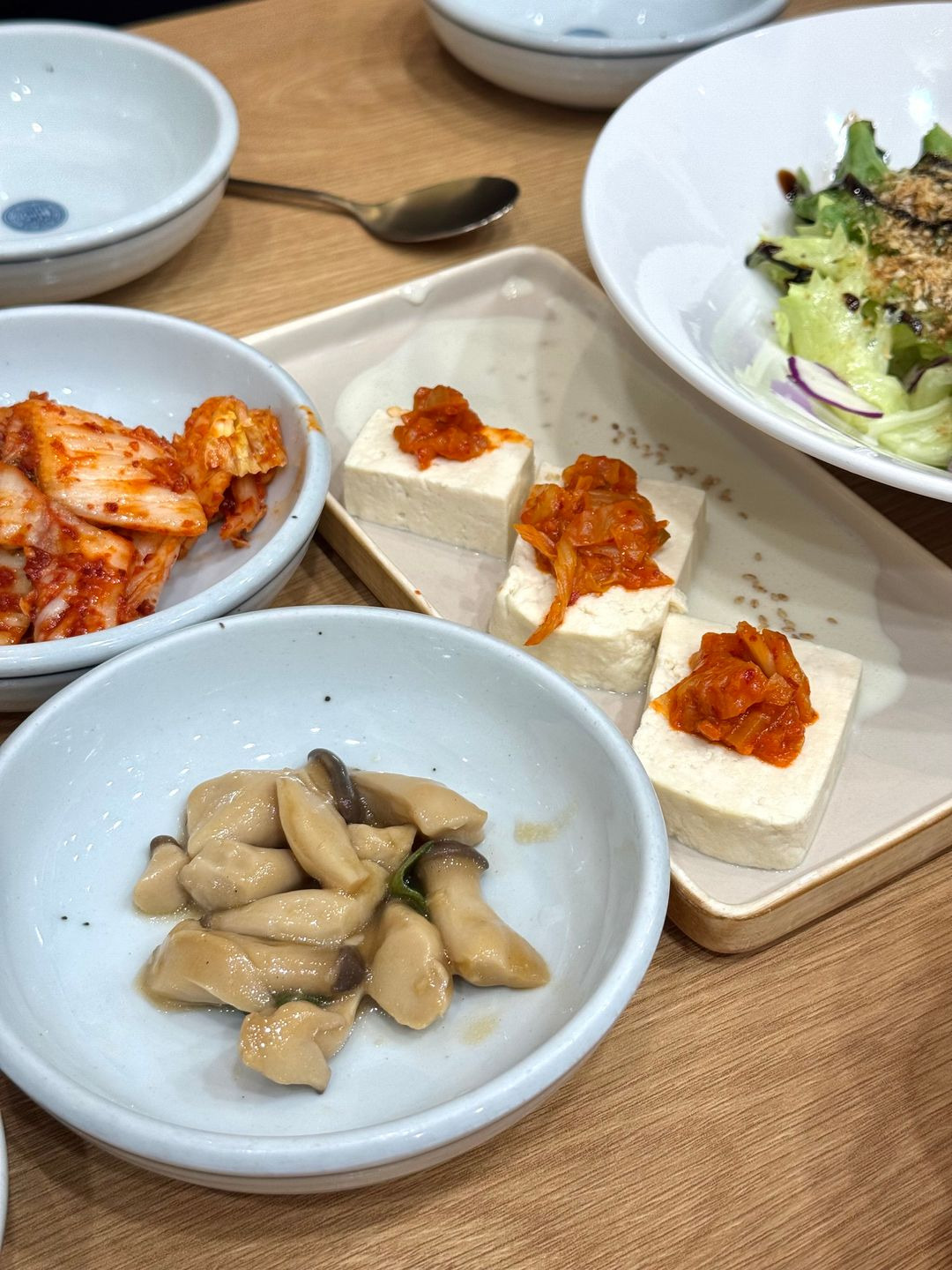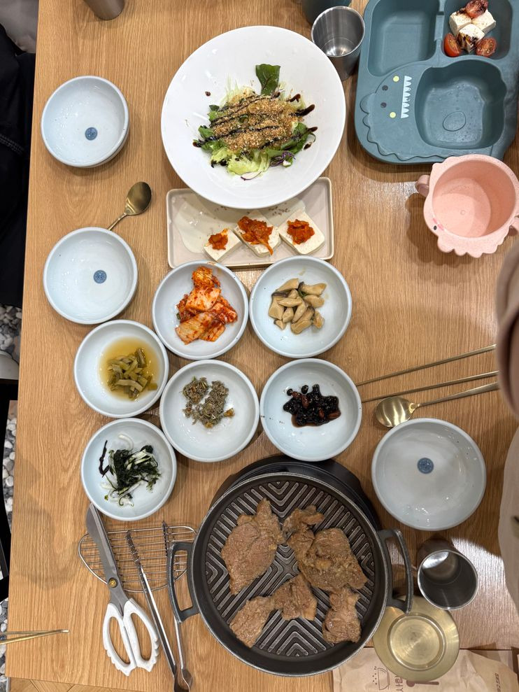 식당에 들어서면 따뜻하고 아늑한 분위기가 느껴져요. 인테리어는 현대적이면서도 편안한 느낌을 주고, 넓은 테이블과 도란도란 앉을 수 있는 작은 테이블이 조화를 이루고 있어요. 가족 단위 손님이나 친구들과 함께 오기에도 좋은 공간이에요.